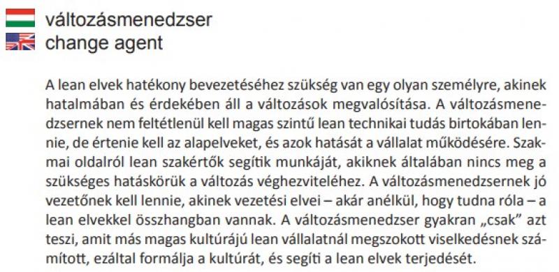 Magyarország első lean szótára 2009-ben jelent meg először, jelenleg már a 7., többször bővített kiadása érhető el 186 oldalon.